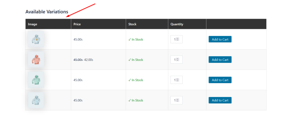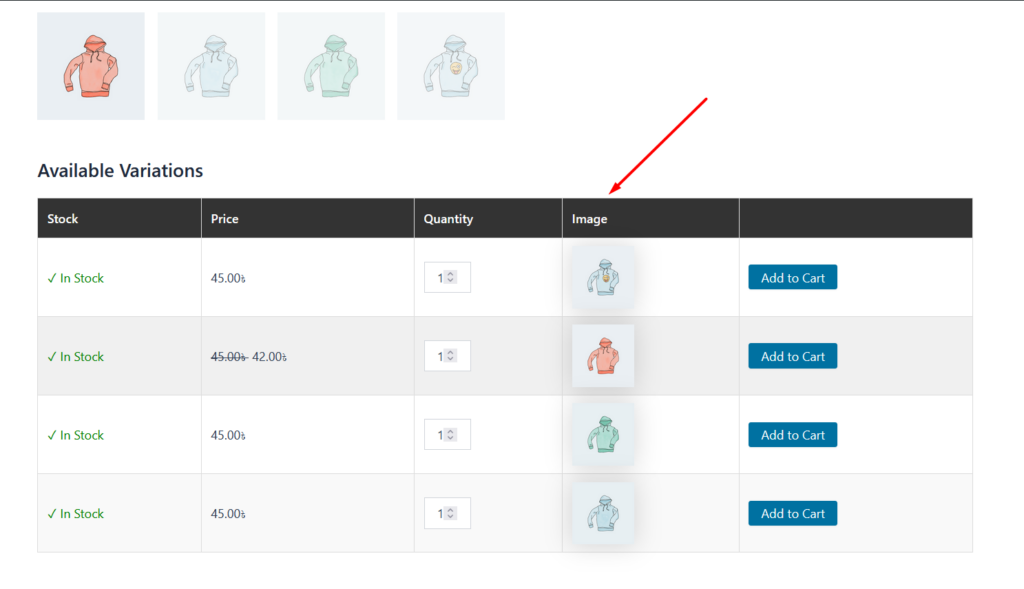 now you will see image column will be display near the add to cart column. see below screenshot.